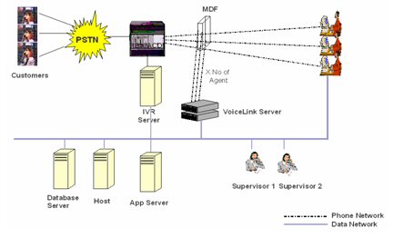 在Voicelink 電話網(wǎng)絡(luò)錄音方案下,語音可以通過每條的電話線獲得并能連接到Voicelink服務(wù)器上。語音將在Voicelink服務(wù)器里被處理,該服務(wù)器內(nèi)裝有語音卡。通過電話“摘機(jī)”和“掛機(jī)”的動(dòng)作來啟動(dòng)錄音和結(jié)束錄音。在TCP/IP的網(wǎng)絡(luò)下,主管可以調(diào)聽錄音并通過登陸到服務(wù)器上進(jìn)行用戶管理。