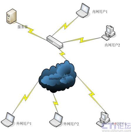 由于視頻會(huì)議系統(tǒng)服務(wù)器放在總部內(nèi)網(wǎng),通過端口影射,內(nèi)網(wǎng)用戶用內(nèi)網(wǎng)服務(wù)器地址登陸,外網(wǎng)用戶通過外網(wǎng)IP登陸即可,實(shí)現(xiàn)內(nèi)外網(wǎng)互聯(lián)。