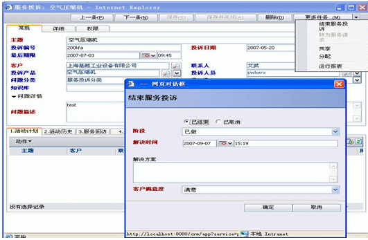 服務(wù)投訴,公司服務(wù)投訴由前臺(tái)接收然后轉(zhuǎn)交工程服務(wù)人員受理即是由工程服務(wù)部經(jīng)理審核通過(guò)后轉(zhuǎn)為服務(wù)請(qǐng)求,從而生成派工單提交總經(jīng)理處審批.