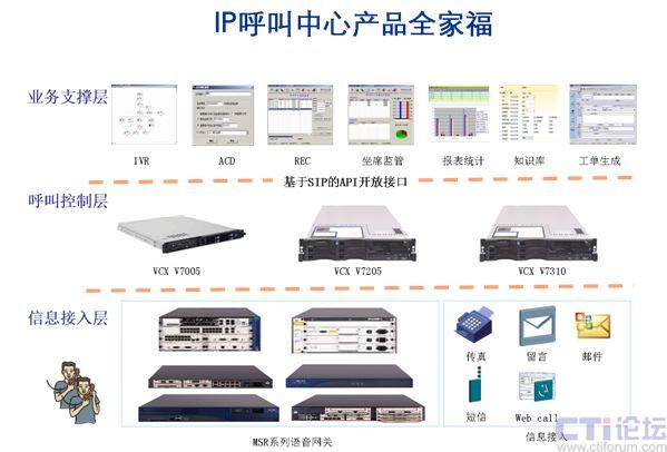 2、“呼叫控制層”指呼叫中心解決方案的核心組件-軟交換平臺VCX V7000,特點(diǎn)如下: