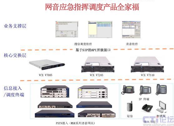 “呼叫控制層”指應用解決方案的核心組件-軟交換平臺VCX V7000,VCX V7000特點如下: