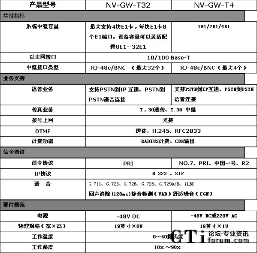 NV-GW-T集中繼網(wǎng)關(guān)和信令網(wǎng)關(guān)功能與一體,該網(wǎng)關(guān)位于公用交換電話網(wǎng)(PSTN)與IP網(wǎng)的接口處,實(shí)現(xiàn)中國一號、ISDN PRI信令與H.323、SIP信令的轉(zhuǎn)換,同時完成公用電話交換網(wǎng)的承載通道與IP網(wǎng)之間的媒體流轉(zhuǎn)換。中繼網(wǎng)關(guān)在電話網(wǎng)側(cè)支持采用ISDN