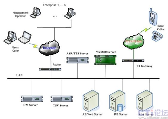 基于IP網(wǎng)絡的優(yōu)點,同樣也是系統(tǒng)更能滿足不同用戶的需求。系統(tǒng)的所有組成部分,均是采用分布式設計。座席可以在分布的,語音交互、呼叫管理等也都是可以分布的,部署在不同的網(wǎng)絡內(nèi),最大程度的根據(jù)企業(yè)的資源配置來量身定做。