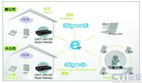 本公司新推出USKY UBS-400(4 ports)/UBS-200(2 ports) Skype Gateway,是專為企業(yè)用戶所設(shè)計的外接式Skype網(wǎng)關(guān)。只須將原有電話交換機(jī)(PBX)連接上我們的USKY UBS-400/UBS-200,企業(yè)用戶無需改變撥號方式,便可輕松透過桌上電話撥打或接聽Skype電話,將傳統(tǒng)電話提升為網(wǎng)絡(luò)電話(VoIP),既簡單又方便!有效幫助企業(yè)用戶增加通話效率,更能大幅減少通話費(fèi)。