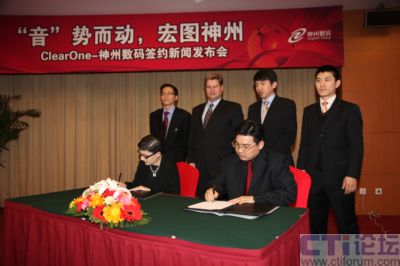 2009年3月10日,國(guó)內(nèi)最大的整合IT服務(wù)提供商神州數(shù)碼和國(guó)際領(lǐng)先的高端音頻會(huì)議系統(tǒng)供應(yīng)商ClearOne在京簽約,共同拓展國(guó)內(nèi)音頻會(huì)議系統(tǒng)市場(chǎng),依托ClearOne的技術(shù)、產(chǎn)品、行業(yè)優(yōu)勢(shì)和神州數(shù)碼強(qiáng)大的市場(chǎng)號(hào)召力及運(yùn)維能力,開(kāi)創(chuàng)國(guó)內(nèi)音頻會(huì)議系統(tǒng)領(lǐng)域全新格局,為企業(yè)、教育、培訓(xùn)、醫(yī)療及政府等行業(yè)客戶帶來(lái)全新震撼體驗(yàn)!