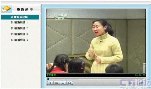 先在直播系統(tǒng)里啟動設置好的01號頻道,其他教師就可以在各自辦公室通過計算機網絡觀看遠教節(jié)目,不需淘神費力地到專門的接收室了。如下圖: