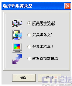 我們是利用電視卡來進行遠教衛(wèi)星電視節(jié)目的校園網絡實時直播,因此選擇“采集硬件設備”項,進入硬件設置,如下圖: