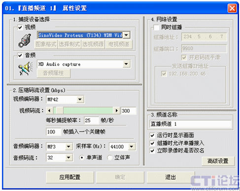 用鼠標右鍵點擊直播頻道管理下的某個頻道號,我這里選擇01:在彈出的右鍵菜單中選擇“直播頻道設置”或者點擊工具欄里的“頻道設置”圖標,出現下面的設置圖: