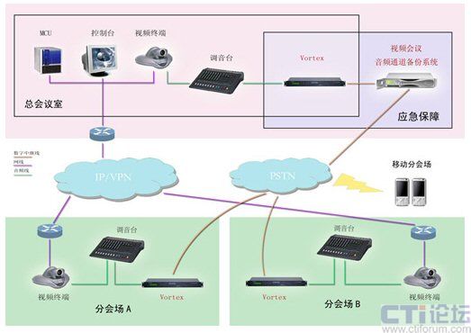 VORTEX 2241:3臺 放置于北京主會場。該設(shè)備可實(shí)現(xiàn)視頻會議的語音同備份語音無縫結(jié)合,確保兩路聲音切換時(shí),與會者不會察覺;顯著減少發(fā)至其它站點(diǎn)的聲音中的環(huán)境噪聲,從而消除麥克風(fēng)和線路輸入和電話接聽音頻的環(huán)境噪聲,提高現(xiàn)有會議裝置的整體音質(zhì)。