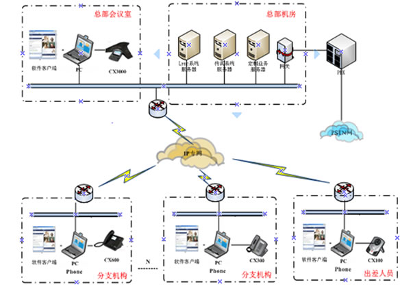 在方案的推進(jìn)過程中,我們在各大會議室部署了CX3000、在桌面分別部署了CX600與IP331。通過這些終端的自身的優(yōu)勢及與系統(tǒng)的配合,實現(xiàn)了完整的電話體驗、PSTN無縫結(jié)合、LYNC完整的企業(yè)級語音功能、 高清晰語音質(zhì)量 、專業(yè)的語音會議等用戶需求,F(xiàn)在此方案在鳳凰網(wǎng)的會議室及桌面的應(yīng)用效果良好,場景應(yīng)用圖如下: