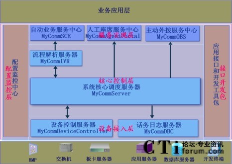 系統(tǒng)平臺層:MyComm是一個基于硬件支撐平臺之上的CTI應(yīng)用開發(fā)中間件。對下屏蔽了復(fù)雜的硬件通控制;對上,簡化和提高業(yè)務(wù)應(yīng)用的實際、開發(fā)和應(yīng)用