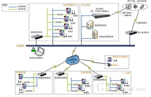由于瑞臣涉及到的是遍及全國(guó)的營(yíng)養(yǎng)屋,因此采用的方式是分布式坐席方案,因此全勝呼叫中心解決方案采用IPCC解決方案,IPCC方案適合廣大用戶使用,性價(jià)比高、穩(wěn)定性好、升級(jí)擴(kuò)容方便且不會(huì)造成升級(jí)前的設(shè)備浪費(fèi)、兼容性好(滿足與所有業(yè)務(wù)系統(tǒng)、數(shù)據(jù)庫(kù)等接口,并融為一體!拓?fù)鋱D如下: