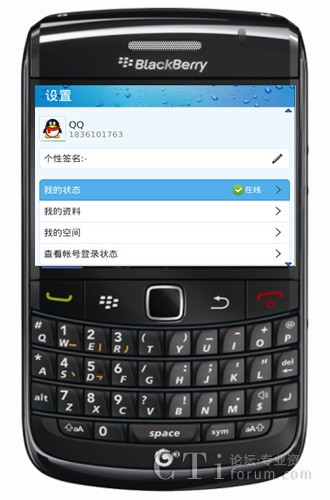 圖:通過BlackBerry® Bold™ 9788登陸黑莓QQ