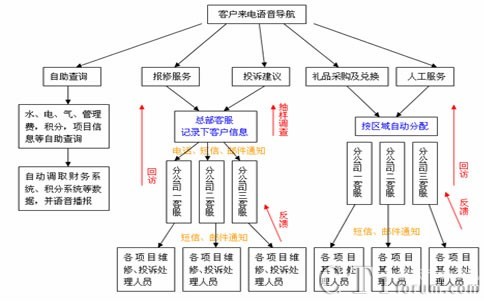 報修投訴、采購、人工咨詢及其他服務(wù)按統(tǒng)一的內(nèi)部流程處理,由各所屬項目座席受理后以短信或郵件的方式通知到各流程處理人員,處理完畢后反饋給項目座席,項目座席回訪并詢問服務(wù)滿意度,總部座席或管理座席隨機(jī)抽樣驗證。處理過程超過一定的期限將定時報送給相關(guān)管理人員。這一流程不僅確保收到了客戶的真實感受,更對服務(wù)的及時性、規(guī)范性作了監(jiān)督,將大大提升XX物業(yè)對客戶的服務(wù)水平。