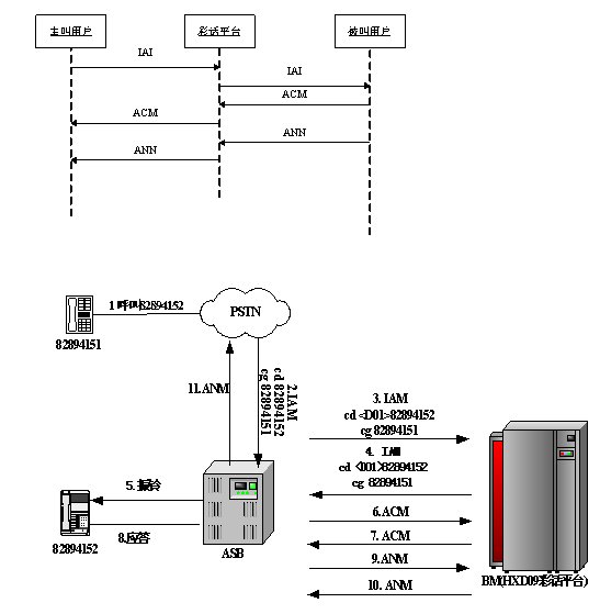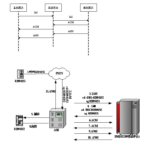 被叫彩話是指呼叫到達(dá)被叫方交換機時,被叫方交換機檢測被叫擁護是否設(shè)置彩話業(yè)務(wù),如果沒有甚至彩話業(yè)務(wù),則直接向被叫用戶發(fā)起呼叫,當(dāng)被叫用戶摘機應(yīng)答后將雙方連接起來通話;如果設(shè)置了彩話業(yè)務(wù),則被叫方交換機將做兩個動作:第一為向被叫用戶發(fā)起呼叫,第二為向彩話平臺發(fā)起呼叫,當(dāng)被叫用戶摘機應(yīng)答后,在被叫交換機上將產(chǎn)生一個會議,將主叫用戶、被叫用戶和彩話平臺加入到會議中。
