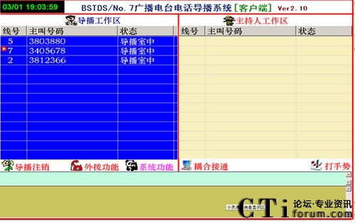 1、直播節(jié)目開播時(shí),參與者打進(jìn)電話,由導(dǎo)播把參與電話導(dǎo)入直播區(qū),這時(shí)直播區(qū)顯示參與者的電話號(hào)碼,主持人可以任意的選擇參與者進(jìn)行通話或掛機(jī)。