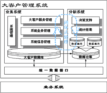 HollyAnalyzer是建立在大客戶信息平臺(tái)基礎(chǔ)上的針對(duì)業(yè)務(wù)主題、面向決策支持的系統(tǒng)。將數(shù)據(jù)倉(cāng)庫(kù)的相關(guān)技術(shù)引入,利用數(shù)據(jù)分析系統(tǒng),從基于客戶數(shù)據(jù)及企業(yè)業(yè)務(wù)活動(dòng)的歷史記錄中提煉出有用的信息產(chǎn)生標(biāo)準(zhǔn)的查詢(xún)報(bào)告,進(jìn)行大客戶分析和市場(chǎng)營(yíng)銷(xiāo)的輔助決策支持。分析主題主要針對(duì)客戶、競(jìng)爭(zhēng)對(duì)手和營(yíng)業(yè)及收入進(jìn)行分析,這些數(shù)據(jù)是企業(yè)非常關(guān)心的信息,有助于企業(yè)借助積累的歷史數(shù)據(jù),對(duì)其業(yè)務(wù)運(yùn)營(yíng)狀況及營(yíng)銷(xiāo)活動(dòng)成效做出正確的評(píng)價(jià),了解客戶行為及其趨向。