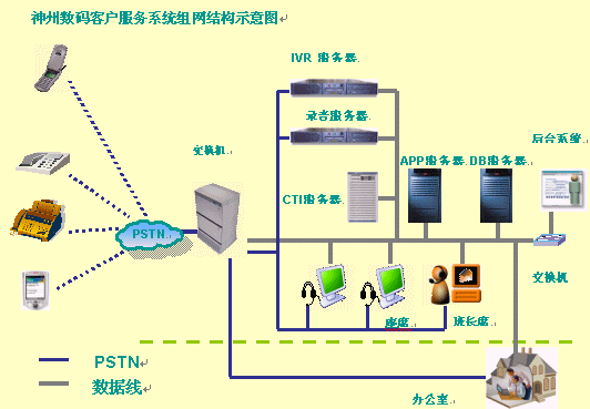 除了在線銷售方式外,神州數(shù)碼還采取了和各大銀行合作的方法,采用直復(fù)營銷的模式銷售其產(chǎn)品。隨著業(yè)務(wù)量的不斷增長,電話呼入訂單及咨詢、查詢、投訴等業(yè)務(wù)日趨漸多,為提高企業(yè)品牌形象,給客戶提供更好更快的優(yōu)質(zhì)服務(wù),神州數(shù)碼需要為各合作銀行提供個性化的接入,實現(xiàn)資源合理整合,提高整體工作效率。因此,迫切需要建立一套完整的呼叫中心客戶服務(wù)系統(tǒng),通過呼叫中心系統(tǒng)的建立,來實現(xiàn)電話、傳真、電子郵件、短信、語音留言等多渠道的接入,以進行服務(wù)請求受理、業(yè)務(wù)訂單處理,達到方便快捷為客戶服務(wù)的目的。神州數(shù)碼于選擇了HOLLYCRM(合力金橋軟件)公司為其建設(shè)了呼叫中心,采用的是HollyC6