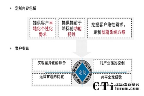 可定制服務(wù)主要體現(xiàn)在三個層面,一個是定制化服務(wù),通過全國10多個本地定制開發(fā)中心對客戶提供貼身二次開發(fā)服務(wù),支撐客戶更精細運營其客服系統(tǒng),另一個是定制化路標,定制化創(chuàng)新系統(tǒng)方案,即通過華為MKT、行銷、開發(fā)部門對客戶價值需求的深度分析,將客戶需求去粗存精、去偽存真、由表及里、由此及彼“定制提煉”出來,成為我們產(chǎn)品和方案的路標。