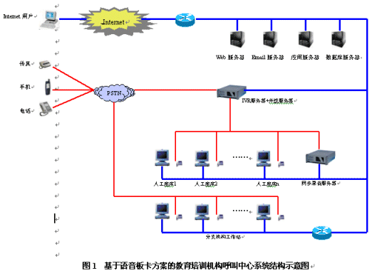 教育培訓(xùn)機(jī)構(gòu)呼叫中心系統(tǒng)是一個(gè)集合電話語音、計(jì)算機(jī)網(wǎng)絡(luò)、數(shù)據(jù)庫(kù)等技術(shù)的綜合信息服務(wù)平臺(tái),主要由自動(dòng)語音應(yīng)答系統(tǒng)、人工座席和數(shù)據(jù)庫(kù)系統(tǒng)三部分組成。