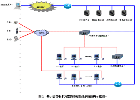 市府熱線系統(tǒng)是一個(gè)集合電話語(yǔ)音、計(jì)算機(jī)網(wǎng)絡(luò)、數(shù)據(jù)庫(kù)等技術(shù)的綜合信息服務(wù)平臺(tái),主要由自動(dòng)語(yǔ)音應(yīng)答系統(tǒng)、人工座席和數(shù)據(jù)庫(kù)系統(tǒng)三部分組成。