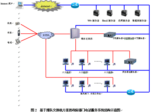 政府部門電話服務(wù)系統(tǒng)是一個集合電話語音、計算機網(wǎng)絡(luò)、數(shù)據(jù)庫等技術(shù)的綜合信息服務(wù)平臺,主要由自動語音應(yīng)答系統(tǒng)、人工座席和數(shù)據(jù)庫系統(tǒng)三部分組成。