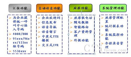 在結(jié)合號(hào)百平臺(tái)在電信NGN網(wǎng)搭建的呼叫中心平臺(tái),企業(yè)可以通過租用資源來組建屬于自己的呼叫中心;使普通電腦可以成為呼叫中心;還具備一般呼叫中心功能外,還具有座席全國部署、快速開通等特點(diǎn)。