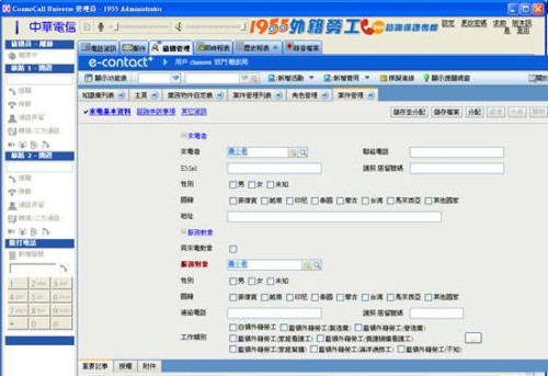 相信不久的將來,e-Contact+ 一定會成為各企業(yè)競相爭購的明星產(chǎn)品!截至目前,確認(rèn)導(dǎo)入此套產(chǎn)品的公司包含臺北縣政府的個案輔導(dǎo)管理、中華電信的客服活動關(guān)懷軟體、1955外籍勞工24小時咨詢保護(hù)專線,這三家公司透過業(yè)務(wù)自行定義物件中的調(diào)整客制化欄位,使用基礎(chǔ)模組的客戶管理,再配合其他相關(guān)模組物件導(dǎo)入,讓工作流程與資料再單一畫面下容易被管理。