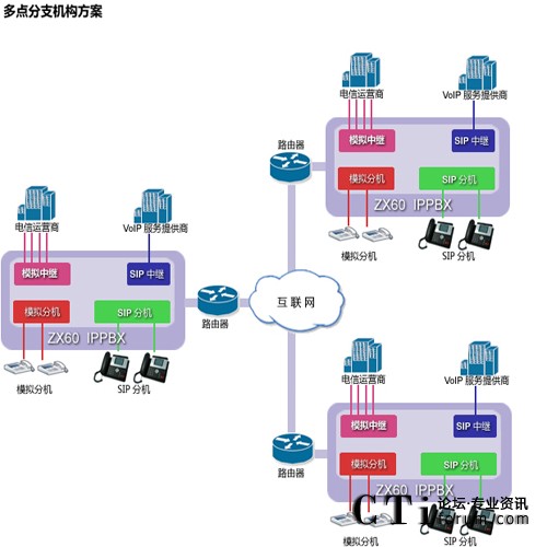 ZX60不僅具有本地電話分機接口,還運行IP電話機遠(yuǎn)程注冊,無論你若干個辦公室分布在何處,都可以打造成你內(nèi)部免費通話的集團電話通信系統(tǒng),節(jié)約你的內(nèi)部通信成本,提高辦公效率。