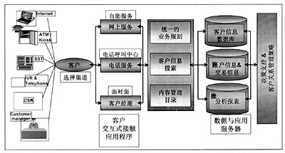 保證客戶信息的充分共享,滿足銀行發(fā)展的需要,最重要的是要建立完整、統(tǒng)一的客戶服務(wù)平臺,這也是銀行建設(shè)客戶關(guān)系管理系統(tǒng)的基礎(chǔ),完善的、適用于銀行業(yè)的客戶服務(wù)平臺應(yīng)當(dāng)包括三個部分: