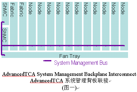 管理系統(tǒng)的信息傳輸和IPMI(智能平臺(tái)管理接口)指令集被用作對(duì)ATCA框架的管理,包括對(duì)電源的管理、電子鑰匙和機(jī)架內(nèi)溫度的監(jiān)控。系統(tǒng)管理是通過機(jī)框管理控制器(ShMC)執(zhí)行的。機(jī)框管理控制器(ShMC)負(fù)責(zé)完成對(duì)ACTA系統(tǒng)中的現(xiàn)場(chǎng)置換單元(Field