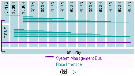 I2C總線使用100Khz時(shí)鐘和3.3V信號(hào)。ATCA規(guī)范制定要求2個(gè)IPMB總線,分別冠以IPMB-A和IPMB-B,兩條總線合一稱之為IPMB-0。IPMB可以以雙總線或雙星型配置方式實(shí)現(xiàn)。之所以要求雙IPMB總線是為了保證系統(tǒng)管理子系統(tǒng)的可靠性。IPMB總線被用作聯(lián)接ShMC與ATCA單板和ATCA機(jī)架中FRUs的橋梁。雙IPMB總線可同時(shí)被使用以加倍傳輸頻寬,但設(shè)計(jì)者必須考慮萬一其中一條IPMB總線失靈所帶來的沖擊。典型的ATCA背板上系統(tǒng)管理間的互聯(lián)如下圖所示,在背板上有兩個(gè)ShMC槽位,兩個(gè)交換槽位,11個(gè)節(jié)點(diǎn)槽位和1個(gè)風(fēng)扇的連接。值得說明的是管理總線與所有的節(jié)點(diǎn)槽、交換槽通過一對(duì)雙備援的ShMC聯(lián)接。