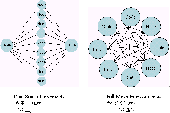 交換接口是ATCA機(jī)框中的主要數(shù)據(jù)傳輸接口。ATCA協(xié)議在每個(gè)板子上定義了多達(dá)15個(gè)通訊通路。這些通訊通路可以被配置成全網(wǎng)狀拓?fù)浣Y(jié)構(gòu)或雙星型拓?fù)浣Y(jié)構(gòu)。在雙星拓?fù)浣Y(jié)構(gòu)中每塊板同兩個(gè)不同的交換板都有通路。交換板在機(jī)框中扮演交換核心的角色。在全網(wǎng)狀拓?fù)浣Y(jié)構(gòu)中,每一個(gè)單板與其它任意單板都保持一個(gè)鏈接通路。下圖描繪了雙星型和全網(wǎng)狀結(jié)構(gòu)中的內(nèi)部互鏈的配置。