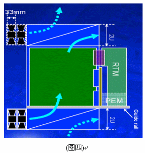 總體而言,目前具有前方進氣風(fēng)扇與后方排氣風(fēng)扇組合散熱系統(tǒng)的ATCA機箱皆為12U機箱。而在10U機箱方面由于受總高度的限制,現(xiàn)階段還是以以前方進氣或后方進氣的設(shè)計為主。因為少了雙向風(fēng)扇的對流作用,所以必須采用效率更高的風(fēng)扇與較佳的進風(fēng)或出風(fēng)設(shè)計才能達到理想的散熱效果。