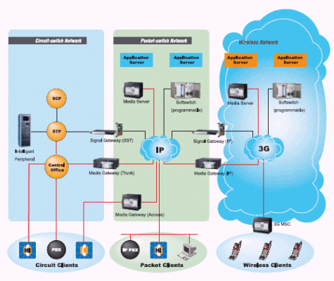 、隨選視訊(Video Streaming) 等應(yīng)用,著重在聲音影像,深具高度收益的潛力,而被服務(wù)供貨商大力推廣。但是服務(wù)提供業(yè)者為了讓使用者能輕易的在現(xiàn)行設(shè)備上溝通聲音影像,必須肩負(fù)極高的成本,同時(shí)運(yùn)營(yíng)兩種網(wǎng)絡(luò)。因此在不損壞傳統(tǒng)語音網(wǎng)絡(luò)穩(wěn)定運(yùn)作而又能快速建置整合新一代IP通訊建設(shè)的限制下,『寬頻通訊平臺(tái)』便以網(wǎng)關(guān)(Gateway)的形式出現(xiàn)扮演接口角色,成為網(wǎng)絡(luò)設(shè)備供貨商及電信系統(tǒng)業(yè)者最佳的解決方案。不但同時(shí)支持IP網(wǎng)絡(luò)又負(fù)起和傳統(tǒng)網(wǎng)絡(luò)以SS7為主的PSTN(Public