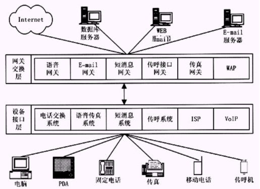 目前,各種各樣的通信設(shè)備及信息在給我們帶來方便的同時也帶來一些麻煩,信息多了,通信設(shè)備多了,使用也變得復(fù)雜化了。怎樣簡化我們獲取信息的方式,讓信息無所不在,這就是目前統(tǒng)一消息平臺所要解決的問題。另外,針對中國目前互聯(lián)網(wǎng)用戶只有1600萬,而電話用戶已經(jīng)達(dá)到了1.6億戶的現(xiàn)狀,統(tǒng)一消息平臺為傳統(tǒng)的電話用戶拓展了信息獲取的范圍,也就是說,電話用戶可以通過傳統(tǒng)的語音、傳真獲取互聯(lián)網(wǎng)上無窮無盡的信息。