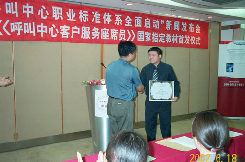 "呼叫中心職業(yè)標(biāo)準(zhǔn)體系全面啟動(dòng)"新聞發(fā)布會(huì),暨《呼叫中心客戶服務(wù)座席員》國家指定教材首發(fā)儀式于2002年6月18日在北京舉行。呼叫中心行業(yè)全面引入國家標(biāo)準(zhǔn)管理體系,全國范圍內(nèi)客戶服務(wù)代表將陸續(xù)持證上崗。