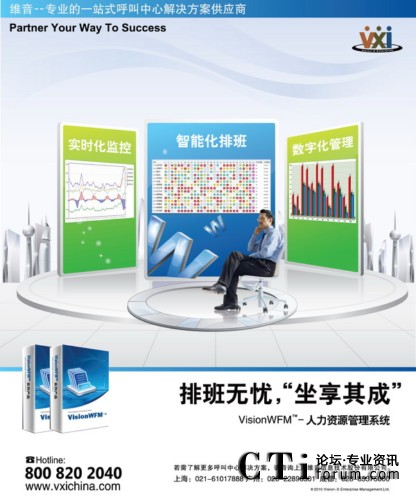 VisionWFM解決方案是為降低客戶服務(wù)中心的運(yùn)營成本、提高客戶服務(wù)中心管理效率而設(shè)計(jì)的。我們可以通過系統(tǒng)軟件,科學(xué)地改進(jìn)運(yùn)營策略和管理方法,使客戶服務(wù)中心在服務(wù)質(zhì)量、客戶滿意度和成本控制等績效指標(biāo)上都取得極大的提高。