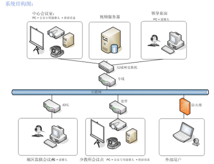所以四川省勞動(dòng)教育局希望能夠建立一個(gè)基于自身網(wǎng)絡(luò),高效率的溝通平臺(tái),滿(mǎn)足日常工作和系統(tǒng)培訓(xùn)等對(duì)會(huì)議的需求,可以提高勞教系統(tǒng)的工作效率,及時(shí)傳達(dá)上級(jí)精神,并實(shí)現(xiàn)對(duì)下屬各級(jí)別單位的有效管理等。