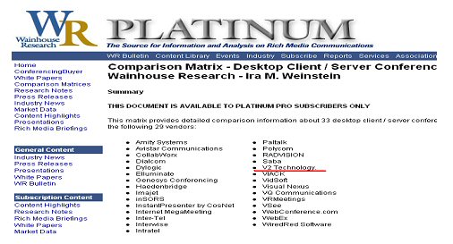 日前,在美國多媒體視頻和通訊領(lǐng)域權(quán)威市場調(diào)研機(jī)構(gòu)的 Wainhouse Research 最新發(fā)布了的全球軟件視頻會(huì)議廠商的研究報(bào)告,北京威速(V2)科技有限公司作為中國領(lǐng)先的軟件視頻會(huì)議與解決方案提供商,憑借在軟件視頻會(huì)議領(lǐng)域里始終如一的卓越表現(xiàn),以中國唯一廠商的身份入主“全球軟件視頻會(huì)議TOP30”榜單。