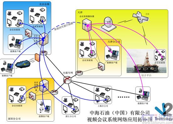 中海石油(中國)有限公司V2 Conference系統(tǒng)網絡應用拓撲圖: