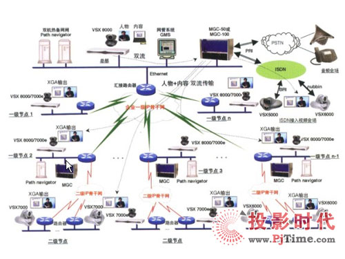 圖為 Polycom 公司大型一體化視頻會(huì)議系統(tǒng)解決方案示意圖。 Polycom