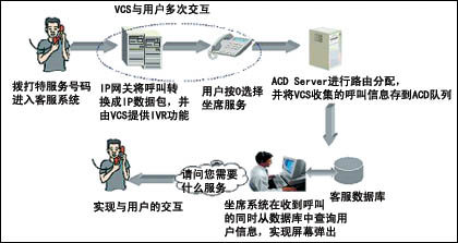 系統(tǒng)內(nèi)部所有媒體呼叫均采用IP數(shù)據(jù)包的格式由核心ACD Server統(tǒng)一處理,完成呼叫控制、路由處理、與呼叫同步的用戶數(shù)據(jù)管理及信息監(jiān)視。對于整個系統(tǒng)而言,雖然媒體接入方式各不相同,但路由策略卻可以完全一致?蛻艨呻S時隨地通過各種媒體與企業(yè)進行緊密聯(lián)系。通過核心控制系統(tǒng),采用一致的路由方式,可以追蹤及管理所有媒體以及一切客服系統(tǒng)人力資源。