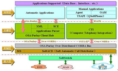 NGCC產(chǎn)品遵循OSA/Parlay體系結構如圖所示。
