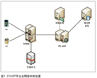 ZXASP:中興短消息增值業(yè)務(wù)平臺,是一個位于SMSC后端的增值業(yè)務(wù)邏輯控制處理網(wǎng)元,它為用戶提供新型短信增值業(yè)務(wù)開戶、銷戶以及業(yè)務(wù)使用流程控制支持等相關(guān)功能。核心網(wǎng)元ZXASP分別與短信中心、營帳系統(tǒng)以及預(yù)付費(fèi)系統(tǒng)進(jìn)行連接,以實(shí)現(xiàn)對用戶簽約多種增值業(yè)務(wù)情況下的服務(wù)支持。如圖1。