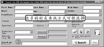 任何一款免費(fèi)軟件的使用過程中,都會被強(qiáng)制地安插進(jìn)一些廣告內(nèi)容,ICQ也不例外。對于這一點(diǎn),財(cái)大氣粗的微軟做得很好。無論是Windows XP中捆綁的MSN,還是網(wǎng)上免費(fèi)下載的,幾乎看不到廣告的影子。另外,即使在最新的ICQ2002a中,似乎仍然不能支持網(wǎng)絡(luò)攝像機(jī)和視頻聊天等功能,而這些功能在即時(shí)通訊領(lǐng)域幾乎成了必備的功能。不過,ICQ中強(qiáng)大的查找好友功能,使你只需記住好友的哪怕是一點(diǎn)點(diǎn)信息,就可以輕松找到這位好友,令任何一款即時(shí)通訊軟件都望塵莫及(如圖3)。新版2002a中還新增了服務(wù)器保存好友信息的功能,使得在世界任何一個角落都可以及時(shí)方便地與好友進(jìn)行聯(lián)絡(luò)。
