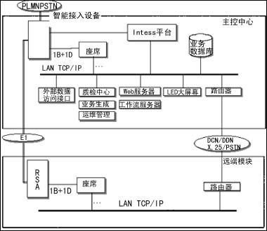 遠端座席通過RSA方式拉遠,通過路由器和主控中心組成廣域網(wǎng)來共享主控中心的數(shù)據(jù)。其它設(shè)備,如智能接入設(shè)備、服務(wù)器、數(shù)據(jù)訪問接口等都放在主控中心。