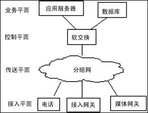 下一代網(wǎng)絡原本包含極其廣泛的內涵,但一個顯而易見的現(xiàn)象值得我們注意。每當人們在談論下一代網(wǎng)時,往往會集中太多的注意力在所謂軟交換技術上,似乎軟交換技術成了下一代網(wǎng)技術的全部。例如,人們習慣用圖1來示意下一代網(wǎng)的結構。