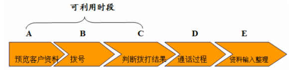 以上是以固定電話作為例子,如果呼叫清單全部是手機(jī)用戶,各種外呼結(jié)果的比例將有所不同,但總體趨勢不會(huì)有太大變化,至少還是有30%-40%的客戶是無法聯(lián)絡(luò)到的客戶。我們從以上的圖中可以看出,近一半的客戶是由于各種原因而無法聯(lián)絡(luò)到的,換句話來說,坐席代表花了大量的時(shí)間在處理一些無效的電話,而真正有效的話務(wù)時(shí)間(ACD%)50%左右。如果將這部分時(shí)間用來處理一些有效電話,那整個(gè)呼叫中心的效率將得到極大的提升。以下是一個(gè)電話呼出的過程: