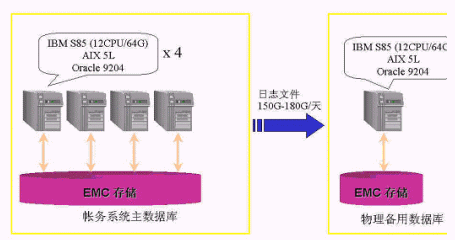 在這里簡單介紹一個(gè)某省移動公司帳務(wù)系統(tǒng)采用Oracle Data Guard物理備用數(shù)據(jù)庫的情況(見圖5)。
